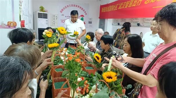 活动现场,木兰花的工作人员为老人们分发了精心准备的月饼。大家围坐在一起,品尝着香甜的月饼,话家常、聊近况,分享着节日的喜悦,现场充满了欢声笑语,邻里情谊在温馨的氛围中愈发浓厚。紧接着在插花环节,工作人员详细讲解了插花技巧与色彩搭配。老人们兴致勃勃地挑选花材,修剪枝叶,将各色鲜花错落有致地插入花篮中,亲手制作出一个个精美的花艺作品,感受动手的乐趣与艺术的美好。