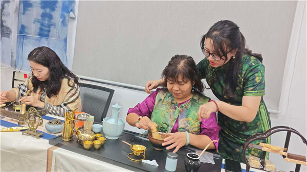 10月14日下午1点,杨园街柴东社区联合湖北木兰花社会工作服务中心,提前2小时启动“携手同行,共筑无障碍家园”项目第二场活动——“茶香禅意 心灵净化”心灵疗愈服务。4名木兰花社工早早到场,挂茶文化纱幔与活动横幅,摆放40人规模的桌椅、乌金石茶台、博古架,细致布置茶道工具、香道物料与茶百戏用具,让会场满溢温馨的传统文化氛围。