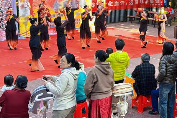 除了精彩纷呈的文艺表演和趣味游戏,活动现场还精心设置了两大宣传区域,为居民们送上实用的知识“大礼包”。“人人有医保,家家有医靠”医保宣传点前,工作人员耐心细致地为居民普及医保政策,解答各类疑问,让医保政策深入人心。平安和谐宣传点更是成为了现场焦点,杨园街民警黄应斌亲临现场,用通俗易懂的语言为居民普及反诈骗知识。他结合真实案例,详细拆解诈骗套路,切实帮助大家提高防范意识,守护好自己的“钱袋子”。同时,现场还开展了消防安全、禁毒、反邪教等知识普及活动,全方位提升居民的安全防范能力。