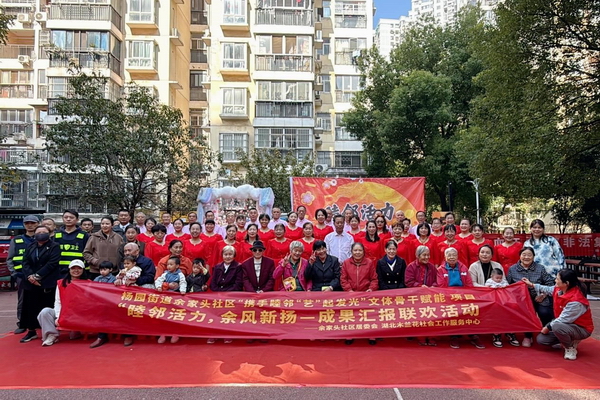 2025年11月5日,武昌杨园余家头社区安胜花园广场上人头攒动、热闹非凡,一场以“睦邻活力,余风新扬”为主题的文化活动成果汇报在此精彩上演。此次活动由余家头社区联合湖北木兰花社会工作服务中心共同主办,现场气氛热烈,邻里们欢聚一堂,共同沉浸在社区大家庭的温暖与活力之中。