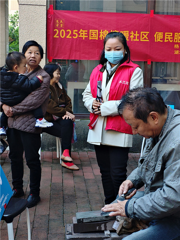最受居民欢迎的当属和谐共融套圈圈互动环节,洗碗手套、抽纸、指甲剪套装等实用生活物品作为奖品,吸引了众多居民踊跃参与,欢声笑语中拉近了邻里距离。“从7月到11月,理发、磨刀、修鞋、修伞、贴膜、缝补,不出小区就能免费享受,太方便了!”居民尤师傅满脸笑意地说,由衷希望社区今后能多多组织此类实用又有趣的便民活动。