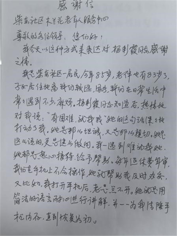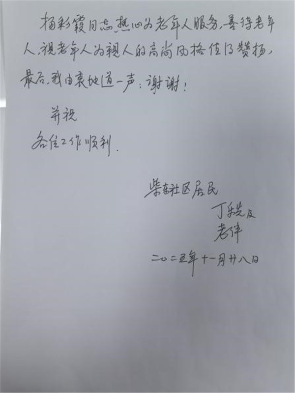 一面锦旗,是一份沉甸甸的信任;一封书信,是一片热乎乎的真情。在柴东社区老年人服务中心,这份跨越“距离”的关爱仍在继续,工作人员用行动诠释着“老吾老以及人之老”的初心,让每一位独居老人都能在温暖中安享晚年。