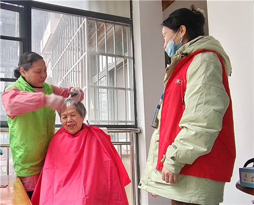 活动现场暖意融融,志愿者们提前布置妥当,分为理发区和写春联区。理发区里,理发师耐心询问老人们的需求,细致修剪发型,一边理发一边和老人拉家常,修剪后的发型整洁利落,赢得老人们一致称赞。