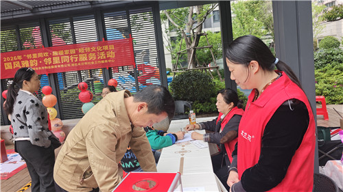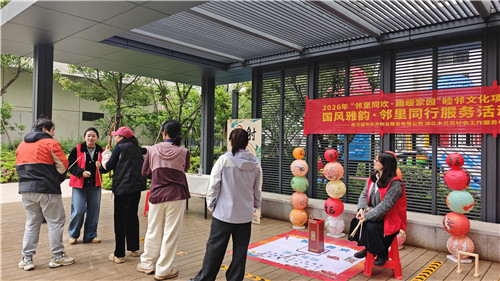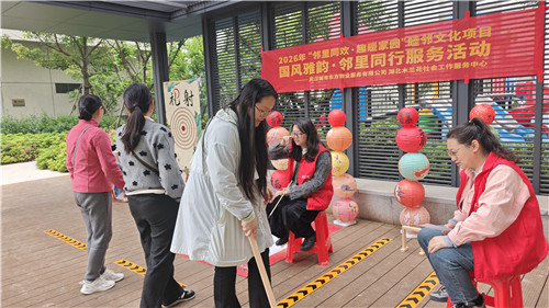 2026年4月15日上午,杨园街道国棉社区联合武汉城市东方物业服务有限公司、湖北木兰花社会工作服务中心,在岸芷汀兰小区举办“国风雅韵·邻里同行”主题服务活动。活动以中华优秀传统文化为内核,通过沉浸式国风体验与趣味互动,让居民在古韵雅趣中增进邻里情谊,厚植社区文化底蕴。