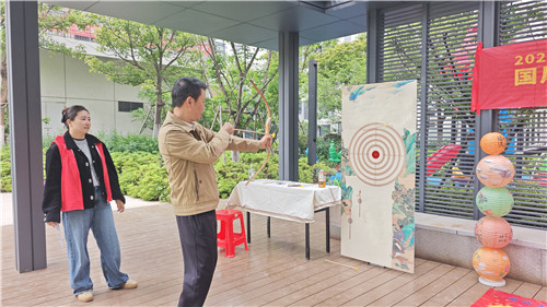 活动现场设置投壶、礼射、捶丸等传统民俗互动闯关项目,居民踊跃参与、默契配合,通关后即可参与现场抽奖。丰富实用的奖品极大提升了居民参与感与成就感,大家纷纷在邻里间自发宣传,吸引更多居民走出家门、乐享文化盛宴,在欢声笑语中感受传统礼仪与古典美学的独特魅力。