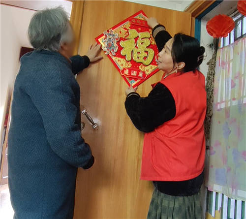新春将至,年味渐浓。为传承非遗文化,弘扬尊老、敬老、爱老、助老的传统美德,近日,理工大水运社区木兰花老年人服务中心组织志愿者,开展“非遗送福进家门”暖心活动,为辖区高龄老人送去承载美好祝福的非遗年画、福字和对联,把关怀与温暖送到老人心坎上。