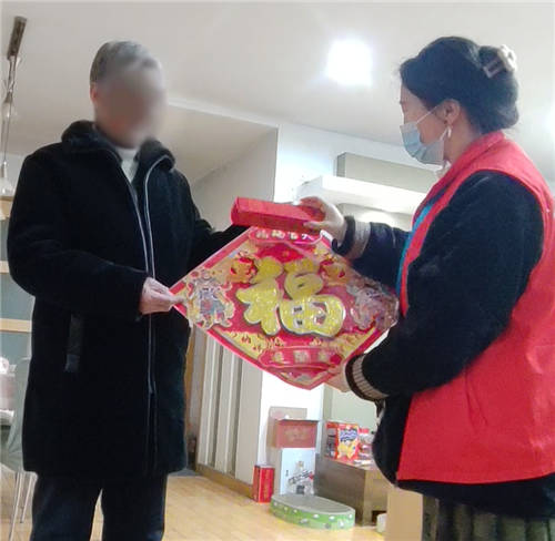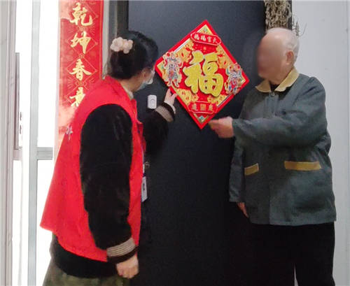 活动前,服务中心精心挑选兼具非遗底蕴与新春寓意的福字和对联,每一件作品都饱含传统韵味,寄托着对老人福寿安康、阖家幸福的美好期许。走访中,社工登门与老人亲切交谈,详细询问老人的身体状况和生活需求,耐心倾听老人心声,同时将红彤彤的非遗福字、对联送到老人手中,现场氛围温馨融洽。